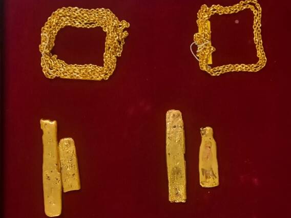 கோவை விமான நிலையத்தில் சார்ஜாவில் இருந்து கோவைக்கு விமானத்தில் கடத்தி வரப்பட்ட 3.03 கிலோ தங்கத்தை பறிமுதல் செய்த அதிகாரிகள் இருவரை கைது செய்தனர்.