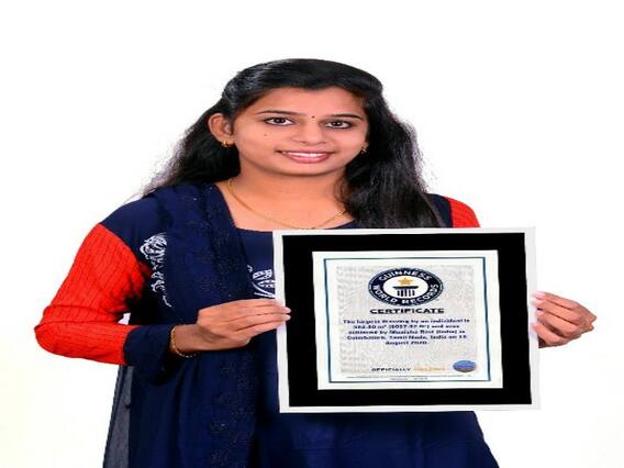 கோவையில் 13 மணி நேரத்தில் 6 ஆயிரம் சதுர அடியில் ஓவியம் வரைந்த மாணவி கின்னஸ் உலக சாதனைப் புத்தகத்தில் இடம் பிடித்துள்ளார்.