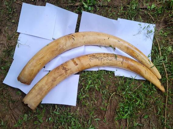இந்நிலையில் இன்று வனத்துறை தனிக் குழுவினர் அடர்ந்த வனப்பகுதியில் ரோந்து சென்றனர். அப்போது யானை இறந்த பகுதியில் இருந்து சுமார் 430 மீட்டர் தொலைவில் உள்ள ஒரு முட்புதரில் யானை தந்தங்கள் இருப்பதை பார்த்துள்ளனர். இதையடுத்து யானை தந்தங்களை வனத்துறையினர் கைப்பற்றினர்.