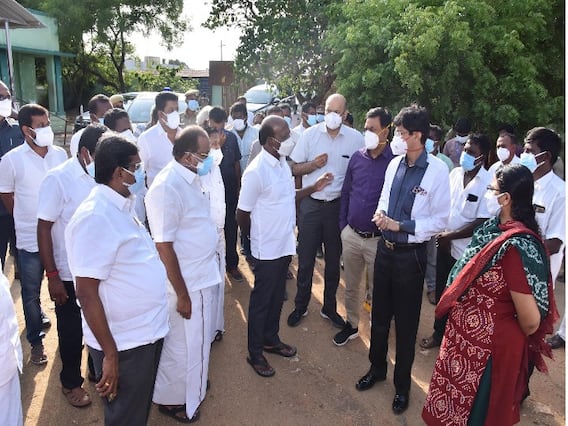 இதற்கு முன்னதாக சூலூர் அருகேயுள்ள காடம்பாடி ஊராட்சியில் அமைக்கப்பட்டுள்ள கொரோனா நோய் சிகிச்சை மையம், இ.எஸ்.ஐ. மருத்துவமனை, ஜி.சி.டி சிறப்பு சிகிச்சை மையம், அரசு கலை கல்லூரி சிறப்பு மையம் ஆகிய பகுதிகளில் சுகாதாரத் துறை அமைச்சர் மா.சுப்பிரமணியன் ஆய்வு மேற்கொண்டார். அப்போது உணவு மற்றும் உணவு பொருட்கள் வழங்கல் துறை அமைச்சர் சக்கரபாணி, வனத்துறை அமைச்சர் ராமச்சந்திரன், கோவை மாவட்ட ஆட்சியர் நாகராஜன் உள்ளிட்டோர் உடனிருந்தனர்.
