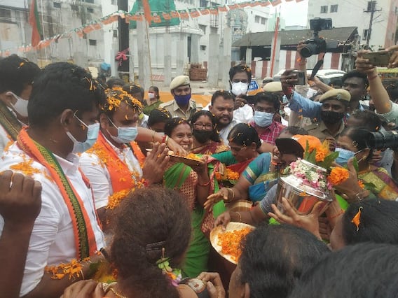 மத்திய இணை அமைச்சர் எல். முருகன் மக்கள் ஆசீர்வாத யாத்திரையை இன்று கோயம்புதூர் மாவட்டத்தில் உள்ள வடகோவை அருகேயுள்ள காமராஜபுரம் பகுதியில் துவக்கினார். இந்த யாத்திரை கோவை, திருப்பூர், நாமக்கல் உள்ளிட்ட மேற்கு மாவட்டங்களில் 3 நாட்களுக்கு நடைபெறுகிறது. இந்நிகழ்ச்சியில் பாஜக மாநிலத் தலைவர் அண்ணாமலை, நடிகர் குஷ்பு உள்ளிட்டோர் பங்கேற்றனர். எல்.முருகனுக்கு பாஜக தொண்டர்கள் மலர் தூவி வரவேற்றனர்.