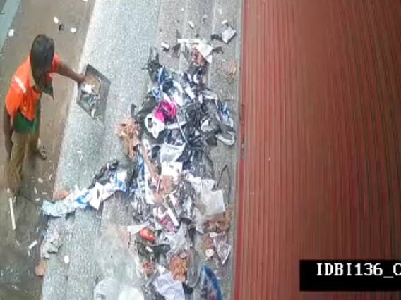 அப்போது உடனடியாக 500 ரூபாய் தர வேண்டும் என அந்த தூய்மைப் பணியாளர் கேட்டு தொந்தரவு செய்ததாகவும், இதனால் இருவருக்கும் இடையே வாக்குவாதம் ஏற்பட்டதாகவும் கூறப்படுகிறது. பின்னர் அந்த தூய்மைப் பணியாளர் அங்கிருந்து சென்றுள்ளார். இந்நிலையில் கடந்த 5 ஆம் தேதி காலையில் அந்த தூய்மைப் பணியாளர் அந்த கடை அருகே இருந்த குப்பையை எடுத்து வந்து, பூட்டப்பட்டு இருந்த கடை முன்பாக கொட்டியுள்ளார். இது அந்த கடையில் பொருத்தப்பட்டு இருந்த சிசிடிவி கண்காணிப்பு கேமராவில் பதிவாகியுள்ளது.