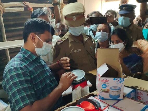 இந்நிலையில் கோவை மாநகராட்சி நஞ்சுண்டாபுரம் பகுதி 62 வார்டில் திமுகவினர் வாக்காளர்களுக்கு பரிசு பொருட்கள் விநியோகம் செய்ய தனியாருக்கு சொந்தமான தோட்டத்தில் உள்ள குடோனில் பரிசு பொருட்களை வைத்திருப்பதாக அதிமுகவினர் அங்கு திரண்டனர். இது குறித்து காவல் துறையினருக்கும் கிராம நிர்வாக அலுவலருக்கும் தகவல் அளிக்கப்பட்டு காவல்துறையினர் மற்றும் கிராம நிர்வாக அலுவலர் சம்பவ இடத்திற்கு வருகை புரிந்தனர். அப்போது உடனடியாக கதவை திறக்க வேண்டுமென அதிமுகவினர் கோரிக்கை விடுத்த நிலையில், தோட்டத்தின் உரிமையாளர் நீண்ட நேரமாக வராத காரணத்தினால் கதவு உடைக்கப்பட்டது. உள்ளே சென்று பார்த்த போது சுமார் 13 பெட்டிகள் இருந்தது. அதில் இரண்டு பெட்டிகள் திறக்கப்பட்ட நிலையில் அதில் ஹாட் பாக்ஸ் இருந்தது தெரியவந்தது. இதனை அடுத்து ஹாட் பாக்ஸ் உள்ளே பணம் இருக்க கூடும் எனவும், எனவே திறந்து காண்பிக்க வேண்டி அதிமுகவினர் கோரிக்கை விடுத்த நிலையில் ஹாட்பாக்ஸ் திறக்கப்பட்டது. ஆனால் அதில் பணம் எதுவும் இல்லாததை தொடர்ந்து அதிமுகவினர் கலைந்து சென்றனர். இது குறித்து எழுந்த புகாரின் பேரில் காவல் துறையினர் மற்றும் தேர்தல் அதிகாரிகள் விசாரணை மேற்கொண்டு வருகின்றனர்.