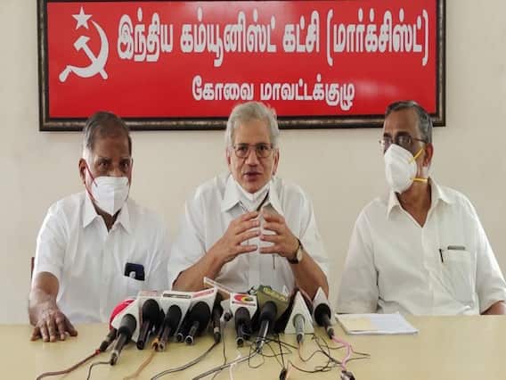 கோவையில் மார்க்சிஸ்ட் கம்யூனிஸ்ட் கட்சியின் தமிழ் மாநில குழு கூட்டம் இன்றும், நாளையும் இரண்டு நாட்கள் நடைபெறுகிறது. இதில் பங்கேற்க அக்கட்சியின் பொதுச்செயலாளர் சீத்தாராம் யெச்சூரி கோவைக்கு வருகை தந்துள்ளார். இந்நிலையில் கோவை காந்திபுரம் பகுதியில் உள்ள மார்க்சிஸ்ட் கம்யூனிஸ்ட் கட்சியின் மாவட்ட அலுவலகத்தில், அக்கட்சியின் பொதுச் செயலாளர் சீதாராம் யெச்சூரி செய்தியாளர்களுக்குப் பேட்டியளித்தார். அப்போது பேசிய அவர், ”கொரோனா தடுப்பூசி குறித்து தெளிவான பதிலை மத்திய அரசு தெரிவிக்கவில்லை. தமிழக முதல்வர் செங்கல்பட்டு, குன்னூர் பகுதிகளில் தடுப்பூசி தயாரிக்க அனுமதி கேட்டுள்ளார். கொரோனா மூன்றாவது அலை வரும் நிலையில், தடுப்பூசி போடும் பணிகளை தீவிரப்படுத்த வேண்டும்.