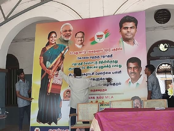 கோவை வெரைட்டி ஹால் சாலையில் உள்ள சிட்டி மாநகராட்சி மேல்நிலைப் பள்ளியில் கல்வி உபகரணங்கள் வழங்கும் நிகழ்ச்சி பாஜக சட்டமன்ற உறுப்பினர் வானதி சீனிவாசன் தலைமையில் நடைபெற்றது. இதில் கோவை தெற்கு தொகுதி மேம்பாட்டு நிதியில் இருந்து 2.50 இலட்ச ரூபாய் மதிப்பிலான கல்வி உபகரணங்களை வானதி சீனிவாசன் வழங்கினார். இதற்கு முன்னதாக பாஜக கட்சியின் சின்னமான தாமரை, பிரதமர் நரேந்திர மோடி, பாஜக தேசிய தலைவர் ஜெ.பி.நட்டா, மாநில தலைவர் அண்ணாமலை உள்ளிட்டோர் புகைப்படங்கள் அடங்கிய பிளேக்ஸ் பேனரை பாஜகவினர் பள்ளி வளாகத்திற்குள் வைத்ததால் சர்ச்சை ஏற்பட்டது.