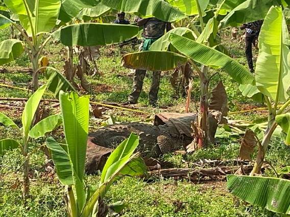 அப்போது வாழை மரங்களுக்கு இடையே மரம் போன்ற ஒன்று தென்பட்டுள்ளது. அதனை உற்றுப் பார்க்கையில் அது சுமார் 12 அடி நீளமுள்ள ராட்சத முதலை என்பது தெரியவந்தது. இதனால் அதிர்ச்சியடைந்த அவர், இதுகுறித்து சிறுமுகை வனத்துறையினருக்கு தகவல் தெரிவித்துள்ளார். விரைந்து சென்ற வனத்துறையினர் சம்பவ இடத்திற்கு சென்று சில மணி நேரத்திற்கு பிறகு முதலையை கயிறு கட்டி பிடித்தனர். பின்னர் முதலையை பிடித்த வனத்துறையினர் வாகனத்தில் ஏற்றிச் சென்று பவானி சாகர் அணைப்பகுதியில் விடுவிக்க முடிவு செய்துள்ளனர்.