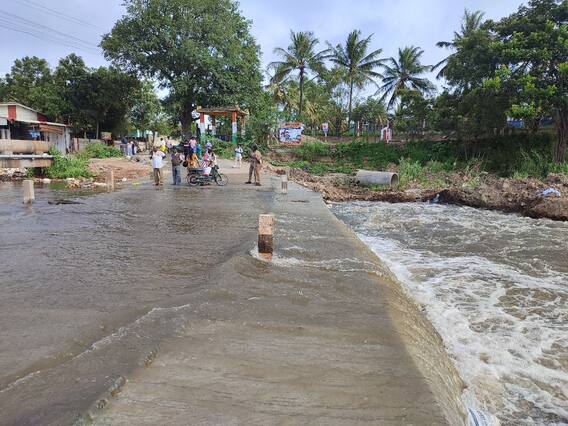 இதேபோல வெள்ளலூர் - நஞ்சுண்டாபுரம் சாலையில் உள்ள தரைப்பாலம் நொய்யல் ஆற்று வெள்ளத்தில் மூழ்கியுள்ளது. தொடர்ந்து ஆற்றில் நீர் வரத்து அதிகரித்து வருகிறது. இதனிடையே தரைப்பாலத்திற்கு மேலே வெள்ளம் பாய்ந்தோடும் நிலையில், வாகன ஓட்டிகள் ஆபத்தை உணராமல் பாலத்தை கடந்து செல்கின்றனர். அதேசமயம் தரைப்பாலத்தை வாகன ஓட்டிகள் கடந்து செல்ல வேண்டாம் என காவல் துறையினர் அறிவுறுத்தி வருகின்றனர்.