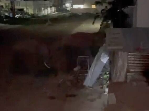 இந்நிலையில் இந்த மூன்று யானைகளும் பெரியநாயக்கன்பாளையம் வனச்சரகம் கதிர் நாயக்கன்பாளையம் பகுதிக்குள் இன்று அதிகாலை நுழைந்தது. அப்போது அங்கு கட்டிட தொழிலாளர்கள் தங்கி உள்ள தகர செட்டுகளை உடைத்து மூன்று யானைகளும் அரிசியை தேடியது. இதனை தொடர்ந்து தகர செட்டுக்குள் தங்கி இருந்த ஐந்துக்கும் மேற்பட்ட வட மாநில தொழிலாளர்கள் உயிர் பயத்தால் உள்ளேயே பதுங்கிக் கொண்டனர். தொடர்ந்து எதிர் வீட்டில் குடியிருக்கும் நபர்கள் வட மாநில தொழிலாளர்களை எச்சரிக்கை செய்து அங்கிருந்து வெளியே வரும்படி அறிவுறுத்தினர். இதனைத் தொடர்ந்து ஒரு தொழிலாளி மட்டும் தகர செட்டுக்குள் இருந்து வெளியே ஓடினார். அப்போது அவரை ஆண் யானை ஒன்று தாக்க முன்ற நிலையில் யானையிடம் இருந்து அத்தொழிலாளி தப்பித்து அருகில் உள்ள குடியிருப்புகள் புகுந்து உயிர் தப்பினார்.