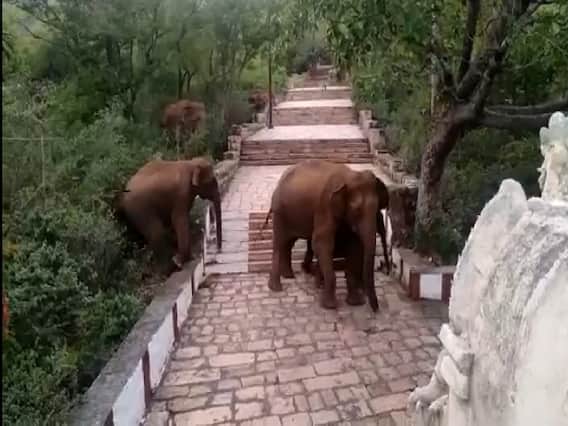 இந்நிலையில் மருதமலை பகுதிக்கு இன்று மாலை இரண்டு குட்டிகளுடன் கூடிய 5 யானைகள் கூட்டம் வந்துள்ளது. மருதமலை கோவிலுக்குச் செல்லும் படிக்கட்டுகளின் மீது யானைகள் சிறிது நேரம் நின்றிருந்தன. அப்போது அங்கே இருந்த நபர்கள் யானைகள் வரும் காட்சிகளை செல்போனில் படம் பிடித்துள்ளனர். அதில் ஒவ்வொரு யானைகளாக காட்டிற்குள் இருந்து வந்து படிக்கட்டுகளில் நிற்பதும், குட்டிகளை சுற்றி யானைகள் பாதுகாப்பு அரணாய் நிற்கும் காட்சிகளும் பதிவாகியுள்ளன. ஆட்களின் சத்தம் கேட்டதால் திரும்பிச் சென்ற யானைகளை அங்கிருந்தவர்கள், ‘இப்படிப் போ. இப்படி’ என படிக்கட்டுகளை கடந்து செல்லுமாறு கூறுவதும் பதிவாகியுள்ளன. சிறிது நேரம் அப்பகுதியில் நின்றிருந்த யானைகள் வனப்பகுதிக்குள் சென்றன.