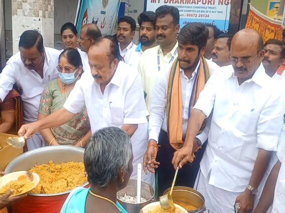 தருமபுரியில் தனியார் தொண்டு நிறுவனத்தின் சார்பில், பசிக்குதா வாங்க, சாப்பிடுங்க என்று உணவு வழங்கும் திட்டத்தின் 1000-வது நாளையொட்டி, மதிய உணவை அமைச்சர் எம்.ஆர்.கே.பன்னீர்செல்வம் தொடங்கி வைத்தார்.
