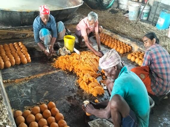 தற்போது பண்டிகைக்காக வெளி மாவட்டங்கள் மற்றும் மாநிலங்களுக்கு அனுப்ப உருண்டை வெல்லம் தயாரிக்கும் பணியில் தொழிலாளர்கள் தீவிரமாக ஈடுபட்டுள்ளனர். பொங்கல் பண்டிகைக்கு இன்னும் சில நாட்கள் உள்ளதால் வெல்லம் உற்பத்தி சூடுபிடித்துள்ளது. தற்போது உருண்டை வெல்லம் கிலோ ரூபாய் 45 க்கு விற்பனை செய்யப்படுகிறது. இதனால் 30 கிலோ கொண்ட ஒரு மூட்டை சிற்பம் ரூபாய் 1350-க்கு விற்கப்படுகிறது.