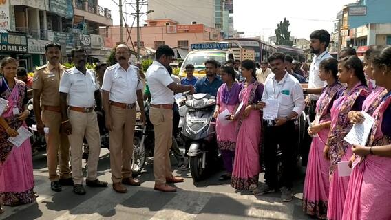 இந்த கூடுதல் சாலை பாதுகாப்பு விதிமுறைகள் நாளை ஜூன் 1 முதல் நாடு முழுவதும் அமல்படுத்தப்பட உள்ளது. இதில் சாலை பாதுகாப்பு விதிமுறையில் 18 வயது ஆகாமல், வாகனம் ஓட்டுபவர்களுக்கும், வாகனம் கொடுப்பவர்களுக்கும் அபராதம். அவர்களின் பெற்றோர்களுக்கும் சிறை தண்டனை வழங்கப்படும் என்ற சட்டம் நாளை முதல் அமலுக்கு வருகிறது. இதனை அடுத்து இன்று தருமபுரி நான்கு ரோடு பகுதியில் தருமபுரி நகர போக்குவரத்து காவல் துறையின் சார்பில் விழிப்புணர்வு மற்றும் எச்சரிக்கை பிரசுரங்கள் இருசக்கர வாகன ஓட்டிகளுக்கு வழங்கி வாகன ஓட்டிகளுக்கு விழிப்புணர்வு ஏற்படுத்தப்பட்டது. இதில் கல்லூரி மாணவிகள், சமூக ஆர்வலர்கள் துண்டறிக்கை களை வழங்கி, விதிமுறைகள் குறித்து தெளிவாக எடுத்துரைத்தனர். இதில் அப்போது 18 வயது ஆகாதவர்கள் வாகனம் ஓட்டினால், அந்த வாகனத்தின் உரிமம் ரத்து செய்யப்படும். அதேபோல் 18 வயதுக்குட்பட்டோர் மோட்டார் வாகனம் ஓட்டினால், வாகனத்தின் உரிமையாளர்களுக்கும் மற்றும் அவர்களின் பெற்றோர்களுக்கு 25 ஆயிரம் ரூபாய் அபராதம் விதிக்கப்படும்.