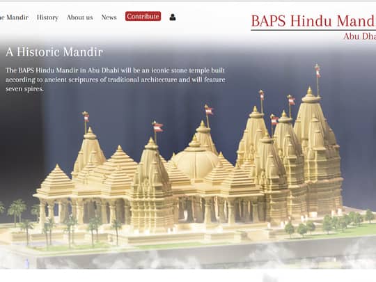 போச்ச சன்வாசி ஸ்ரீ அக்ஷர் புருஷோத்தம் ஸ்வாமி நாராயண் சன்ஸ்தா (Bochasanwasi Shri Akshar Purushottam Swaminarayan Sanstha) (BAPS), என்னும் நிறுவனம், 450 மில்லியன் திர்ஹாம் செலவில், இந்த கோவில் கட்டப்படுகிறது. இந்தக் கோவில் வடிவமெடுப்பதை வெளிக்காட்டும் வகையிலான வீடியோவை புருஷோத்தம் ஸ்வாமி நாராயண் சன்ஸ்தா நிறுவனம் வெளியிட்டுள்ளது.