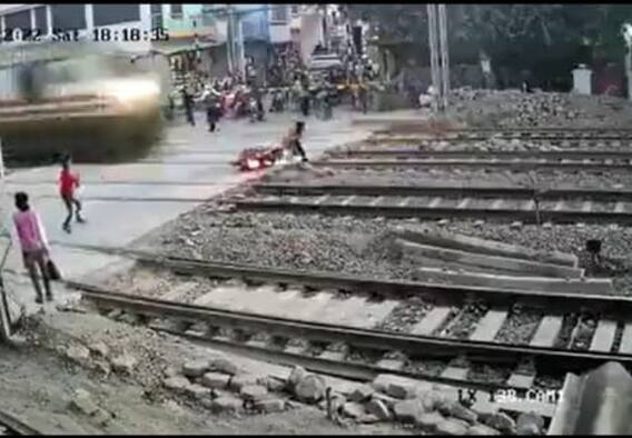 சமூக வலைத்தளங்களில் வைரலாகி வரும் இந்த வீடியோவில் ரயில் தண்டவாளங்கள் மூடப்பட்டிருப்பதையும் கண்டுகொள்ளாமல் வேகமாக மோட்டார் சைக்கிளில் செல்லும் நபர் ஒருவர், தண்டவாளத்திற்கு அருகில் சென்றவுடன் தன்னை நெருங்கி வரும் ரயிலைக் கண்டு சுதாரித்து வாகனத்தைத் திருப்புவதற்கு முன்பு, ரயில் அவரது வாகனத்தை இடித்து நொறுக்குகிறது. இந்த விபத்தில் மோட்டார் சைக்கிளை ஓட்டியவரும் காயம் அடைந்ததாகவும் கூறப்படுகிறது.