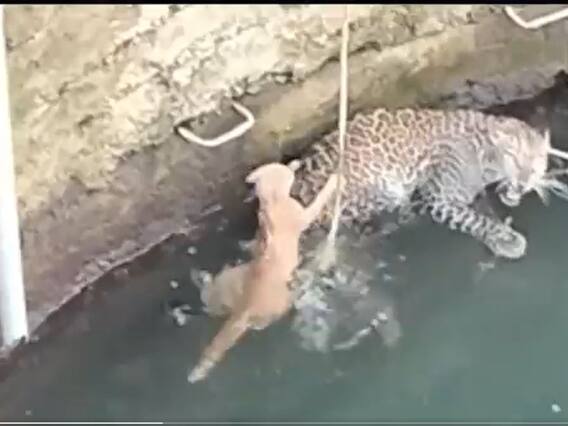 இதனிடையே, கிணற்றில் விழுந்த சிறுத்தை சுவற்றில் இருந்த கம்பி ஒன்றின் மீது ஏறி உயிர் பயத்தில் அமர்ந்து இருந்தது. அப்போது, கிணற்றில் இருந்த பூனை அதன் அருகே வந்த போதும், எந்த ஒரு தாக்குதலையும் மேற்கொள்ளாமல் இருந்துள்ளது. சிறுத்தையின் பின்புறம் சென்ற பூனையோ அதன் மீது ஏறி குதித்து, கிணற்றில் இருந்து தப்பி வெளியேற முயன்றுள்ளது. ஆனால், அந்த முயற்சியும் தோல்வியிலேயே முடிந்துள்ளது. வழக்கமாக சக விலங்குகளை வேட்டையாடக்கூடிய சிறுத்தை, அந்த சிறுத்தை தன் மீது ஏறி குதித்து தப்பிக்க முயன்றும் கூட எந்த ஒரு சலனமும் இன்றி உயிர் பயத்தில் அந்த கம்பியின் மீது எந்தவொரு சலனமும் இன்றி அமர்ந்திருந்தது.