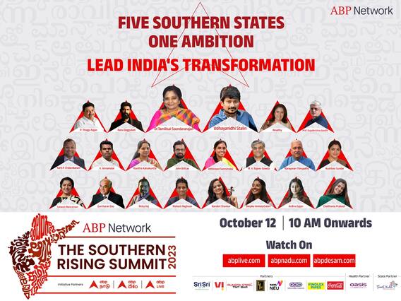 ABP Southern Rising Summit 2023 LIVE: சினிமா முதல்.. 2024 மக்களவைத் தேர்தல் வரை.. ஏபிபி நெட்வொர்க்கின் ”ABP Southern Rising Summit 2023" நிகழ்வில் பல்வேறு துறைகளைச் சேர்ந்த ஆளுமைகளும் அரசியல்வாதிகளும் தங்களுடைய சினிமா, அரசியலில் பெண்களின் பங்கு மற்றும் வரவிருக்கும் 2024 மக்களவை பொதுத் தேர்தல் பற்றிய தங்கள் கருத்துக்களைப் பகிர்ந்து கொள்ளவுள்ளனர்.