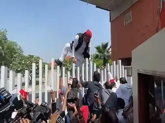 இதை தொடர்ந்து, சமாஜ்வாதி கட்சி தலைவர்கள் மற்றும் தொண்டர்களுடன் அகிலேஷ் யாதவ், மையத்தின் சுவரை ஏறி குதித்து உள்ளே செல்ல முயற்சி செய்தார். ஆனால், வளாகத்திற்குள் நுழையவிடாமல் போலீசார் தடுக்க முயன்றபோது அங்கு குழப்பம் நிலவியது. கூட்டத்தை கலைக்க காவல்துறை சிறிய தடியடி நடத்தினர்.