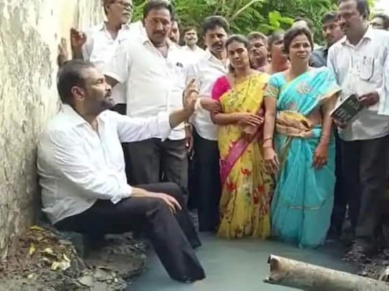 ஆந்திராவில் ஆளும் ஒய்.எஸ்.ஆர் காங்கிரஸ் எம்.எல்.ஏ கோட்டம் ரெட்டி ஸ்ரீதர் ரெட்டி சாக்கடையில் இறங்கி நூதன போராட்டத்தில் ஈடுபட்ட சம்பவம் வைரலாகி வருகிறது.