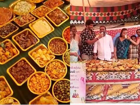 இந்நிலையில் கிருஷ்ணா மாவட்டத்திலும் இதுபோன்ற சம்பவம் நடந்துள்ளது. மாவட்டத்தில் உள்ள சித்தூர்பு கிராமத்தைச் சேர்ந்த ஜி சாய்நாத்தின் குடும்பத்தினர் தங்கள் மருமகனுக்கு 250 சுவையான உணவுகளை சமைத்து பரிமாறினர். புதுமணத் தம்பதிகள் ரேவந்த்-நவ்யாவுக்கு இது மறக்க முடியாத விருந்தாக இருக்கும் என்பது குறிப்பிடத்தக்கது. கடந்த சில வருடங்களாக மாமியார் வீட்டில் மருமகனுக்கு வகைவகையான விருந்துகளை பரிமாறி அதை சோஷியல் மீடியாக்களில் வைரலாக்குவது ட்ரெண்டாகி வருகிறது. இதை நெட்டிசன்கள் கலாய்த்தும் கொண்டாடியும் வருகின்றனர். இப்படிப்பட்ட மாமியார் கிடைப்பது வரம் என்பது ஒரு தரப்பினரின் கருத்தாக இருந்தாலும், விளம்பரத்திற்காகவே இதுபோன்று நூற்றுக்கும் மேற்பட்ட உணவுகளை பரிமாறுவதாக நெட்டிசன்கள் கருத்து தெரிவித்து வருகின்றனர்.