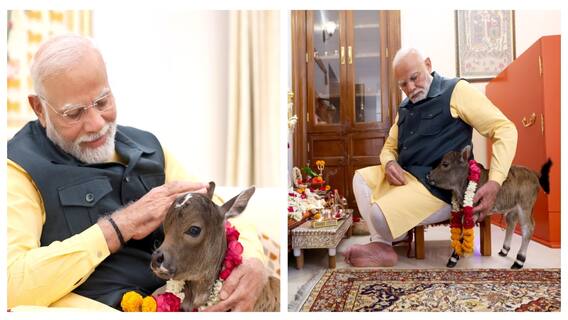 இந்த நிலையில், பிரதமர் இல்லத்தில் வளர்க்கப்பட்டு வரும் பசு மாடு ஒன்று இன்று கன்றுக்குட்டி ஒன்றை ஈன்றுள்ளது. இந்த கன்றுக்குட்டி பிறந்ததை பிரதமர் மோடி தன்னுடைய எக்ஸ் பக்கத்தில் வீடியோவுடன் பதிவிட்டுள்ளார். அந்த கன்றுகுட்டியை தூக்கி பிரதமர் இல்லத்தில் உலா வரும் மோடி, அந்த கன்று குட்டியை வீட்டின் உள்ளே அழைத்துச் செல்வதும் வீட்டின் உள்ளே இருந்த பூஜையறையில் துர்காதேவி சிலைக்கு முன்பு புதியதாக பிறந்த கன்றுக்குட்டிக்கு மாலையிட்டார். பின்பு, பொன்னாடை போர்த்தினார்.