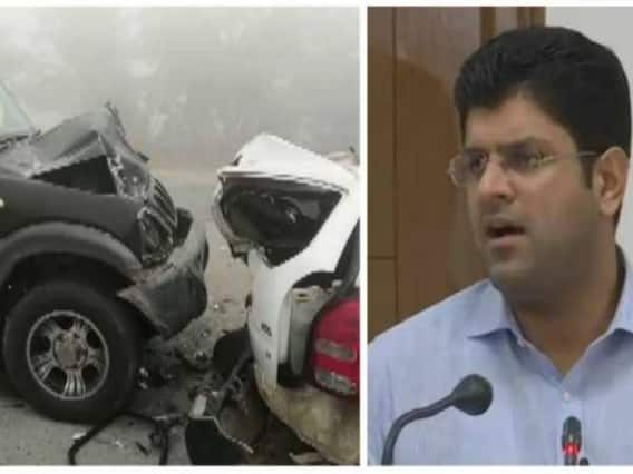 கடுமையான மூடுபனி காரணமாக ஹரியானா துணை முதல்வர் துஷ்யந்த் சவுதாலா சென்ற கார் இன்று (செவ்வாய்க்கிழமை) காலை ஹிசாரின் அக்ரோஹா பகுதியில் விபத்துக்குள்ளானது.