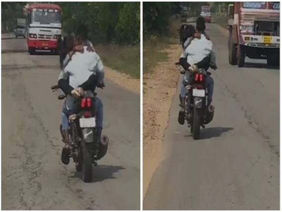 அதில், ஒரு இளைஞன் பைக்கில் செல்வதையும், அந்த இளைஞனின் பைக் பெட்ரோல் டேங்கில் அமர்ந்து ரொமான்ஸ் செய்துகொண்டே செல்கின்றனர். மேலும், அவர்கள் செல்லும் சாலை காலியாக இருந்ததால் பெரிதாக யாரும் கண்டுகொள்ளவில்லை.