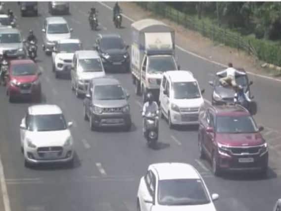சுமார் 19 கிலோ மீட்டர் தொலைவிற்கு கார் பேனட்டில் போக்குவரத்து போலீசார் சித்தேஸ்வரர் மாலி தொங்கியபடியே தன்னை தற்காத்துக் கொண்டு பயணித்துள்ளார். அந்த காரை போலீசார் பின்தொடர்ந்தே சென்றனர். பின்னர். 19 கி.மீ. தொலைவிற்கு பிறகு பால்ம் கடற்கரை சாலையில் போலீசார் அந்த காரை ஒருவழியாக மடக்கிப்பிடித்து நிறுத்தினர்.