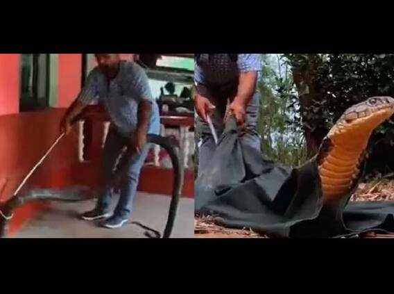 அப்படியொரு சம்பவத்தின் காட்சிகள் கொண்ட வீடியோ இன்ஸ்டாகிராமில் பகிர்ந்திருந்தார் நெட்டிசன் ஒருவர். அவர் தனது இன்ஸ்டாகிராம் பக்கத்தில் பகிர்ந்த வீடியோவில் அந்த நபர் ஒரு ராஜ நாகத்தைப் பின் தொடர்கிறார்.அதனை முத்தமிட முயற்சிக்கிறார். இறுதியில் அதன் நெற்றியில் முத்தமும் இடுகிறார். காண்போரை அந்த வீடியோ பதறச் செய்கிறது. அவர் வேறு யாருமில்லை கேரளாவைச் சேர்ந்த பிரபல பாம்பு மீட்பர் வா வா சுரேஷ். அவர் இதுவரை 38000 பாம்புகளை மீட்டுள்ளார். 3000 முறை பாம்புக் கடியும் வாங்கியுள்ளார் என்று புள்ளிவிவரங்கள் கூறுகின்றன.