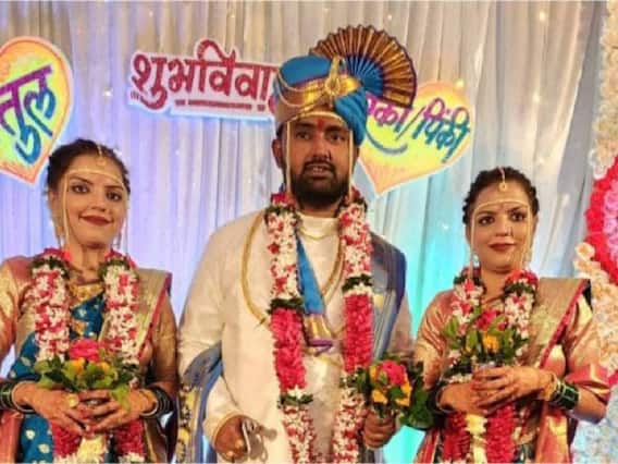 மகாராஷ்ட்ராவில் ஒரே நபரை இரட்டை சகோதரிகள் திருமணம் செய்து கொண்டது நெட்டிசன்கள் மத்தியில் பரபரப்பை ஏற்படுத்தியுள்ளது.