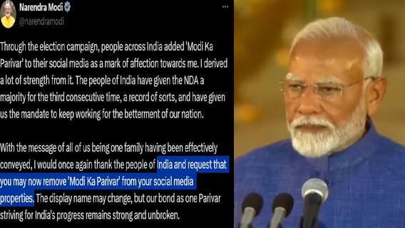 இதுகுறித்து எக்ஸ் தளத்தில் அவர் வெளியிட்டுள்ள பதிவில், "தேர்தல் பிரச்சாரத்தின் மூலம், இந்தியா முழுவதும் உள்ள மக்கள் தங்கள் சமூக ஊடகங்களில் என் மீதான பாசத்தின் அடையாளமாக 'மோடி கா பரிவார்'(மோடியின் குடும்பம்) என பதிவிடுகின்றனர். எனக்கு அதன் மூலம் உத்வேகம் கிடைத்துள்ளது.