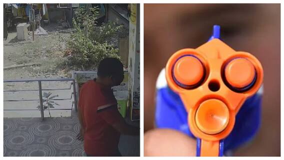 தடுக்க முயன்ற கடை உரிமையாளரையும் கொள்ளையர்கள் தாக்கி இருக்கின்றனர். துப்பாக்கியின் பின்புறத்தால் அவரை தாக்கி உள்ளனர். இதனால், அந்த துப்பாக்கி உடைந்துவிட்டது. பின்னர், மூவரும் மோட்டார் சைக்கிளில் தப்பிச் சென்றனர்.