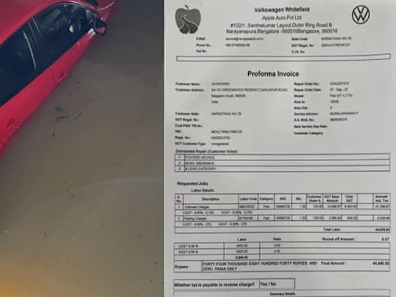 பெங்களூருவில் உள்ள கார் உரிமையாளர் ஒருவர், ரூ. 11 லட்சம் மதிப்புள்ள வோக்ஸ்வேகன் போலோ ஹேட்ச்பேக் காரை பழுதுபார்ப்பதற்கு கொடுத்தபோது ரூ. 22 லட்சம் பில் கொடுத்து ஷோரூம் அவரை அதிர்ச்சிக்குள்ளாக்கியுள்ளது.