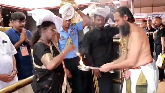 குடியரசுத் தலைவர் திரௌபதி முர்மு 4 நாட்கள் அரசுமுறைப் பயணமாகக் கேரளா சென்றுள்ளார். அவர் நேற்று மாலை திருவனந்தபுரத்தில் உள்ள சர்வதேச விமான நிலையத்திற்குச் சென்ற நிலையில், இன்று அவர் சபரிமலையில் தரிசனம் செய்தார். இருமுடி கட்டி ஜனாதிபதி திரெளபதி முர்மு, சபரிமலை கோயிலில் 18ம் படி ஏறி ஐயப்பனை தரிசனம் செய்தார்.