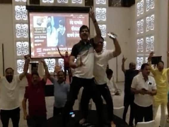 மகாராஷ்ட்ராவின் முதலமைச்சராக சிவசேனா அதிருப்தி எம்எல்ஏக்களில் ஒருவரான ஏக்நாத் ஷிண்டே பொறுப்பு ஏற்பார் என அறிவிக்கப்பட்டதை தொடர்ந்து அவரது ஆதரவு எம்.எல்.ஏக்கள் குத்தாட்டம் போட்டனர்.