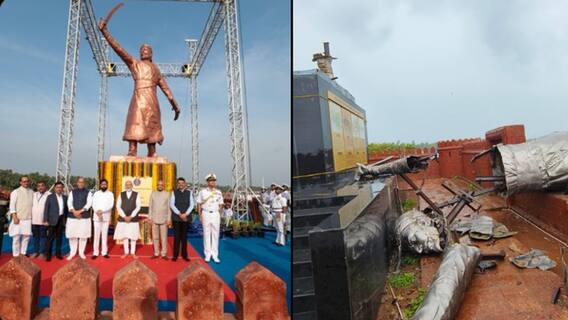 சரிந்து விழுந்த சத்ரபதி சிவாஜியின் சிலை: சிந்துதுர்க் மாவட்டம் ராஜ்கோட் கோட்டையில் உள்ள சத்ரபதி சிவாஜியின் சிலையை பிரதமர் மோடி கடந்தாண்டு டிசம்பர் மாதம் 4ஆம் தேதி, கடற்படை தின கொண்டாட்டங்களின்போது திறந்து வைத்தார். கடந்த சில நாட்களாகவே, மகாராஷ்டிராவில் பலத்த காற்றுடன் கூடிய கனமழை பெய்து வருகிறது.