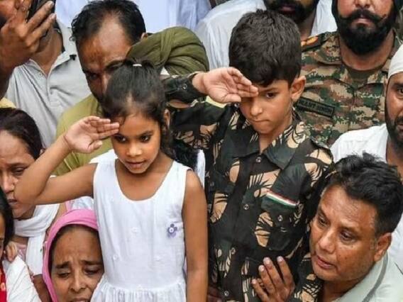 அப்போது, வீர மரணம் அடைந்த ராணுவ வீரருக்கு ராணுவ சீருடையில் அவரது 6 வயது மகன் சல்யூட் அடித்த சம்பவம் அனைவரையும் நெகிழ்ச்சியில் ஆழ்த்தியது. தனது தந்தை இறந்தது கூட தெரியாமல் 6 வயது மகனும் 2 வயது மகளும் சல்யூட் அடித்தனர். கிராம மக்கள் அவர்களை தோளில் தூக்கி சுமந்தபடி ராணுவ வீரருக்கு இறுதி அஞ்சலி செலுத்தினர்.