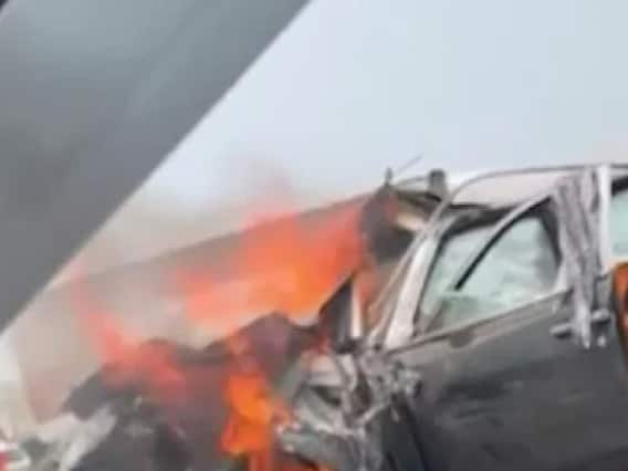 எண்ணெய் டேங்கர் லாரியை ஓட்டி வந்த ஓட்டுநர் ராம்ப்ரீத்தும் அவரது உதவியாளர் குல்தீப்பும் உயிரிழந்தனர். விபத்தில் சிக்கிய ரோல்ஸ் ராய்ஸ் காரின் இந்திய மதிப்பு 10 கோடி ரூபாய்க்கு மேலிருக்கும். சம்பவ இடத்தில் எடுக்கப்பட்ட வீடியோவில் காரின் முன்புறம் மோசமாக சேதம் அடைந்திருப்பதும் என்ஜின் தீப்பிடித்து எரிவதும் பதிவாகியுள்ளது. சேதம் அடைந்த காரின் பாகங்கள் சம்பவ இடம் முழுவதும் பரவி கிடக்கிறது.