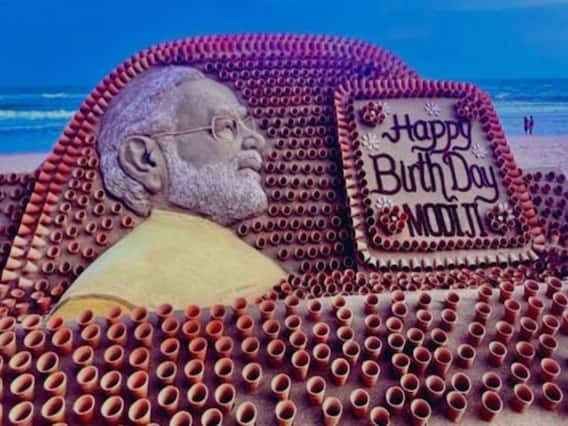 உலக அளவில் பிரபலமான மணல் கலையை உருவாக்கி செய்திகளில் இடம்பிடித்த சுதர்சன் பட்நாயக் இந்த முறை பிரதமர் மோடியின் ஐந்து அடி உயர மணல் சிற்பத்தை உருவாக்க மண் தேநீர் கோப்பைகளை பயன்படுத்தி உள்ளார். பிரதமர் மோடியின் சிலையை செய்ய இந்த மணல் கலைஞர் சுதர்சன் சுமார் 5 டன் மணலைப் பயன்படுத்தி உள்ளார். அந்தச் சிற்பத்தில் 'பிறந்தநாள் வாழ்த்துக்கள் மோடி ஜி' என்ற வாழ்த்து செய்தியையும் அவர் எழுதி இருக்கிறார். இந்த மணல் கலைஞருக்கு உலக அளவில் புகழ்பெற்ற மணல் கலைப் போட்டியில் பங்கேற்றதற்காக 2014 இல் பத்மஸ்ரீ சுதர்சன் விருது வழங்கப்பட்டது.