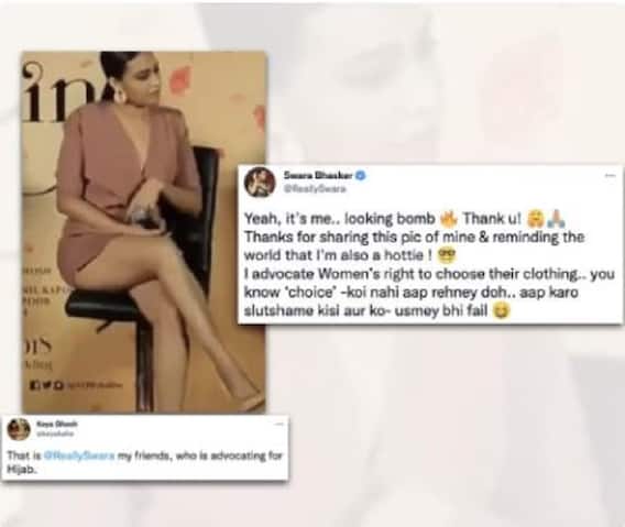 மேற்கு வங்கத்தைச் சேர்ந்த பாரதிய ஜனதா மகளிர் அணி உறுப்பினரான கேயா கோஷ் என்பவர் ஸ்வராவின் மாடர்ன் உடை அணிந்த புகைப்படத்தை தனது ட்விட்டரில் பகிர்ந்தார் மேலும், ‘இப்படி உடை அணிந்திருக்கும் ஸ்வராதான் ஹிஜாப் உரிமை பற்றி பேசுகிறார்’ எனக் கூறி அவர் உடையை கேலி செய்தார்.