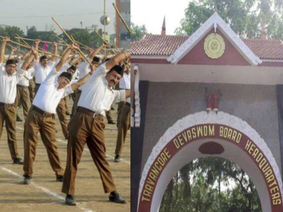 கேரளாவில் உள்ள கோயில்களில் ஆர்.எஸ்.எஸ். உள்ளிட்ட சங்பரிவார் அமைப்புகள் பயிற்சி எடுப்பதை தடுக்கும் பழைய உத்தரவை கடுமையாக பின்பற்ற வேண்டும் என திருவிதாங்கூர் தேவசம் போர்டு அறிக்கை ஒன்றை வெளியிட்டுள்ளது.