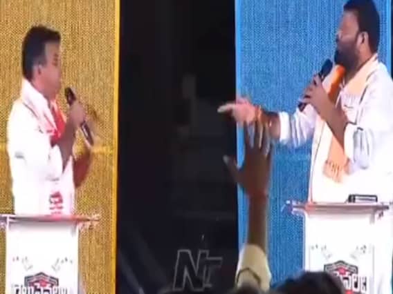 இப்படியான நிலையில், தேர்தல் தொடர்பாக ஹைதராபாத்தில் தெலுங்கு செய்தி தொலைக்காட்சி சார்பில் விவாத நிகழ்ச்சி நடத்தப்பட்டது. இந்த விவாத நிகழ்ச்சி லைவாக ஒளிபரப்பப்பட்டது. இந்த நிகழ்ச்சியில் ஆளுங்கட்சியான பாரத ராஷ்டிர சமிதி (பிஆர்எஸ்) கட்சியின் குத்புல்லாபூர் தொகுதி எம்.எல்.ஏ விவேகானந்த் மற்றும் பாஜக வேட்பாளர் குணா ஸ்ரீசைலம் கவுடாவும் பங்கேற்றனர். அப்போது, இவர்களுக்கு இடையே காரசாரமாக விவாதம் நடைபெற்றுக் கொண்டிருந்தது. விவாதத்தில் இரண்டு பேரும் அவர்களது கருத்தை முன்வைத்து நீண்ட நேரமாக பேசிக் கொண்டு இருந்தனர். ஒரு கட்டத்தில் பாஜக வேட்பாளர் குணா ஸ்ரீசைலம் கவுடா ஒரு கருத்தை சொன்னார்.