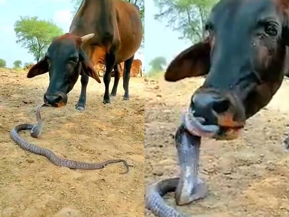 பசுவும் பாம்பும் விளையாடும் வீடியோ