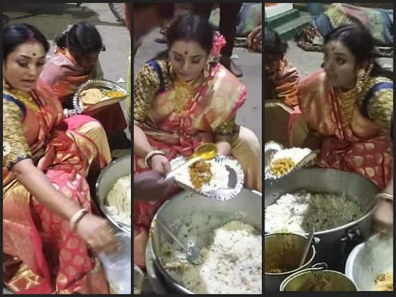 இந்தியாவில் திருமணங்கள் என்பது பல செயல்பாடுகள் மற்றும் விழாக்களுடன் கூடிய பிரமாண்டமான நிகழ்வாக இருக்கிறது. இடையில் கோரோணா அச்சுறுத்தல் மற்றும் லாகடவுண் காரணங்களால், பிரம்மாண்டங்கள் குறைந்த திருமணங்களையும், மிகச்சிறிய செலவில் நடந்த திருமணங்களையும் வித்தியாசமான திருமணங்களையும் நிறைய பார்த்திருக்கிறோம். ஆனால் சில மாதங்கள் முன்பு முழு லாக்டவுனை எடுத்ததும் மீண்டும் பெரிய பெரிய திருமணங்கள் நடைபெற துவங்கிவிட்டன. அத்தகைய திருமணங்களில் உணவு ஒரு மிக மும்கியை பகுதியாகும், மேலும் பெரும்பாலும், குடும்பங்கள் தங்கள் விருந்தினர்கள் பசியுடன் திரும்பி சென்றுவிடக்கூடாது என்பதற்காக அதிக உணவைக் சமைக்கிறார்கள். இதனால், ஏராளமான உணவுப் பொருட்கள் வீணாகின்றன. அத்தகைய சூழ்நிலையில், வங்காளத்தில் ஒரு ரயில்வே பிளாட்பாரத்தில் ஒரு பெண் தனது திருமணத்திற்கான நகைகள் மற்றும் பட்டுப்புடவை அணிந்து, ஏழைகளுக்கு எஞ்சிய திருமண உணவை வழங்கும் காட்சி விடியோவாக வெளியாகி பலரை சிந்திக்கவும் நெகிழவும் செய்திருக்க