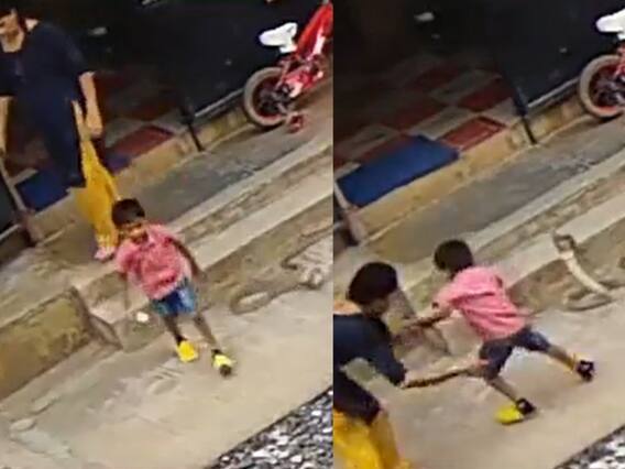 இந்நிலையில், பாம்பு மெல்ல நகர்ந்து சிறுவனை கொத்த முற்படுகையில், தாய் நல்வாய்ப்பாக கவனித்து குழந்தையை நொடிப்பொழுதில் காப்பாற்றுகிறார்.