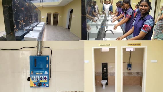 தனியார் பள்ளிகளுக்கே சவால் விடும் வகையில் சகல வசதிகளுடன் கூடிய அரசு பள்ளி கழிவறை. தமிழக்திலியே முதன்முதலாக அரசு மகளிர் பள்ளியில் மின்னணு தானியங்கி மூலம் செயல்படுத்தப்படும் வெஸ்டர்ன் டாய்லெட், தானியங்கி தண்ணீர் குழாய்கள், நாப்கின் அறை உள்ளிட்ட பல்வேறு வசதிகளுடன் 50 லட்சம் மதிப்பில் கட்டப்பட்ட கழிவறையை திறந்து வைத்த காஞ்சிபுரம் சட்டமன்ற உறுப்பினர்
