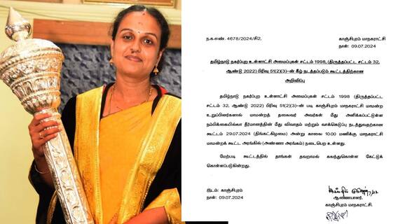 வருகின்ற 29ஆம் தேதி மாநகராட்சி கூட்டம் நடைபெற உள்ளது. இக்கூட்டத்தில் மாமன்ற உறுப்பினர் மீது நம்பிக்கை இல்லாத தீர்மானம் குறித்த விவாதம் மற்றும் வாக்கெடுப்பு நடைபெற உள்ளது. இதில் பெரும்பான்மையை மகாலட்சுமி யுவராஜ் நிரூபித்தால் மீண்டும் மேயராக தொடர முடியும். இதுகுறித்து அனைத்து கவுன்சிலருக்கும் காஞ்சிபுரம் மாநகராட்சி ஆணையர் செந்தில் முருகன், கூட்டத்தில் கலந்து கொள்வதற்கான கடிதத்தை அனுப்பி வைத்துள்ளார்.