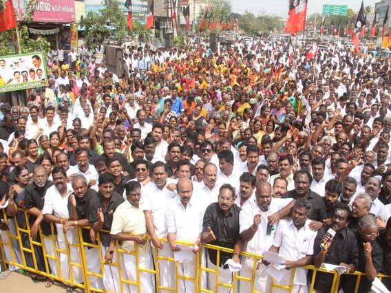 எடப்பாடி பழனிசாமி, அவரின் பாதுகாவலர் கிருஷ்ணன், சிவகங்கை சட்டமன்ற உறுப்பினர் செந்தில்நாதன், முன்னாள் அமைச்சர் மணிகண்டன், அக்ரி கிருஷ்ணமூர்த்தி மகன் மற்றும் அடையாளம் தெரியாத அதிமுக நபர் ஒருவர் ஆகிய 6 பேர் மீது காவல்துறை வழக்குப்பதிவு செய்தது. இந்நிலையில் முன்னாள் முதலமைச்சர் எடப்பாடி பழனிசாமி மீது காவல்துறை வழக்குப்பதிவு செய்ததை கண்டித்து மதுரை பழங்காநத்தம் ஜெயம் தியேட்டர் அருகில் முன்னாள் அமைச்சர்கள் செல்லூர் ராஜூ, ஆர்.பி.உதயகுமார், சட்டமன்ற உறுப்பினர் ராஜன் செல்லப்பா ஆகியோர் தலைமையில் தி.மு.க., அரசை கண்டித்து கடந்த 13-ம் தேதி ஆர்ப்பாட்டம் நடத்தினர். இந்த ஆர்ப்பாட்டத்தில் மதுரை மாநகர், புறநகர், மேற்கு மாவட்ட அதிமுக சார்பில் 2000க்கும் மேற்பட்ட அ.தி.மு.கவினர் கலந்து கொண்டு காவல்துறையை கண்டித்தும், தி.மு.க., அரசை கண்டித்தும் கருப்பு சட்டை அணிந்து கண்டன முழக்கங்களை எழுப்பினர்.
