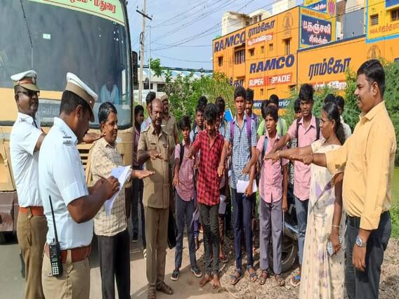 அதன்படி அவனியாபுரம் பெரியார் சிலை முன்பாக போக்குவரத்து காவல்துறை இன்ஸ்பெக்டர் தங்கபாண்டியன் பேருந்து படியில் பயணம் செய்த மாணவர்களுக்கு அறிவுரை வழங்கி விழிப்புணர்வு உறுதிமொழி எடுக்க வைத்தார். இந்த நிகழ்ச்சியில் ஆர்.டி.ஓ சித்ரா, திருப்பரங்குன்றம் போக்குவரத்து இன்ஸ்பெக்டர் பூர்ணா கிருஷ்ணன், போக்குவரத்து கழக கிளை மேலாளர் முத்துமணி, உதவி பொறியாளர் கண்ணன், இன்ஸ்பெக்டர் இளங்கோவன், போக்குவரத்து சிறப்பு சார்பு ஆய்வாளர் செல்வம், காவலர்கள் அழகு முருகன், சதீஷ் உள்பட பலர் கலந்து கொண்டனர்.