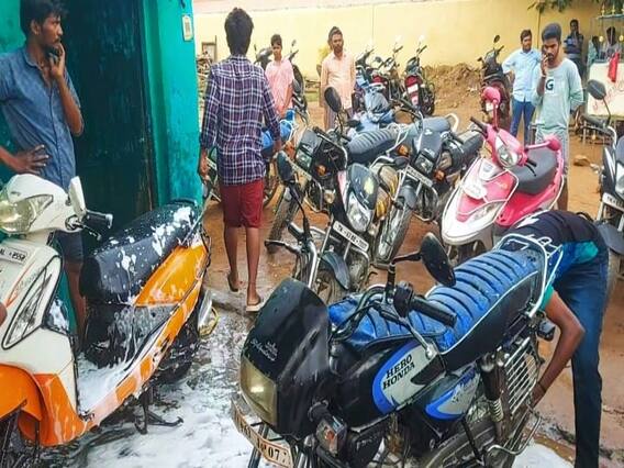 இன்று 23-ம் தேதி திங்கள்கிழமையும் நாளை (24.10.2023) விஜய தசமியும் கொண்டாடப்படுகிறது. இன்று காலை 9 மணி முதல் 10.30 மணி வரையிலும் மதியம் 12க்கு மேல் 1.30க்குள் பூஜை செய்ய நல்ல நேரம் என ஜோதிட நிபுணர்கள் சொல்கின்றனர். மாலையில் 6 மணிக்கு மேல் 7.30 மணிக்குள் பூஜை செய்யலாம். அதனை தொடர்ந்து இரவு 8.30 மணி முதல் 9 மணி வரை பூஜை செய்து இறைவனை வணங்க நல்ல நேரம் ஆகும். ஆயுத பூஜையன்று சரஸ்வதி தேவிக்கும், பார்வதி தேவிக்கும், லக்ஷ்மி தேவிக்கும் தான் முக்கியத்துவம். இந்நிலையில் ஆயுதபூஜை மற்றும் சரஸ்வதி பூஜையை ஒட்டி விடுமுறை அறிவிக்கப்பட்டுள்ளது. இந்நிலையில் சிவகங்கையில் வாட்டர் சர்வீஸ் செய்வதற்கு டோக்கன் முறையில் காத்திருந்து உரிமையாளர்கள் தங்களது வாகனங்களை வாட்டர் சர்வீஸ் செய்து கொள்கின்றனர்.