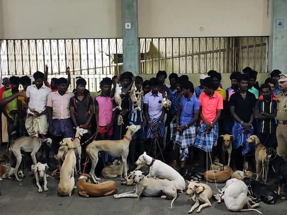 திண்டுக்கல் மாவட்டம் பழனியை அடுத்துள்ள தொப்பம்பட்டி பகுதியில் வேட்டைநாய்களுடன் பலர் சுற்றித்திரிவதாக பழனி வனத்துறையினருக்கு தகவல் கிடைத்தது. இதனையடுத்து பழனி வனச்சரக அலுவலர் பழனிகுமார் தலைமையிலான வனத்துறையினர் தொப்பம்பட்டி பகுதியில் தீவிர சோதனையில் ஈடுபட்டனர். அப்போது நாற்பதுக்கும் மேற்பட்டோர் வேட்டை நாய்களும் சுற்றி வந்தது தெரியவந்தது.